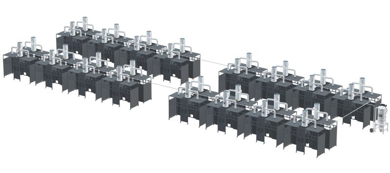Naše společnost uvádí na trh systémy decentrálního odsávání, a to z důvodu rostoucího tlaku na úsporu CO2, resp. na úsporu elektrické energie ve výrobním procesu.