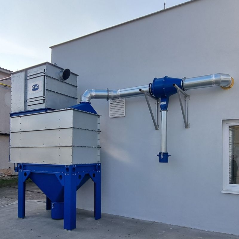 Filtrační systém vybavujeme odlučovačem jisker, který snižuje riziko zahoření filtrační jednotky. Filtrační jednotky používáme textilní, vždy vybavené automatickou regenerací filtračního média pomocí tlakového vzduchu. Při použití sekundárního stupně filtrace je možné přefiltrovanou vzdušninu odsávanou od laseru či plazmy vracet zpět do prostoru výrobní haly. Zajišťujeme odsávání od pálících strojů nejen kovových materiálů, ale i od dělení plastu, kůže, papíru či jiných laserových gravírovacích strojů.