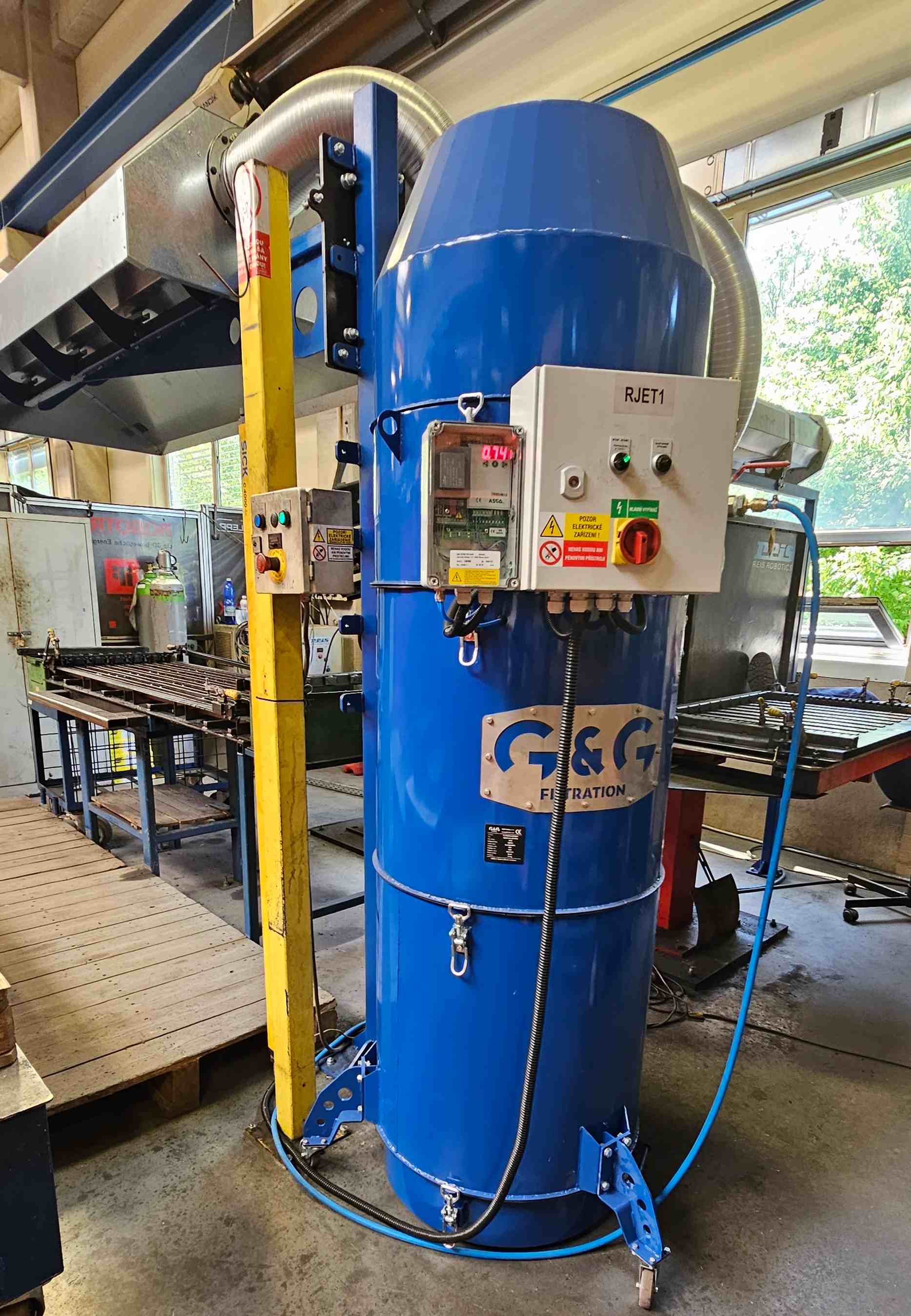 Filtrační jednotky G&G Micro JET slouží k odsávání samostatných pracovních míst, které je složité, nebo finančně nákladné připojit k systému centrálního odsávání prachu. Filtry jsou vybaveny automatickou regenerací filtrační patrony pomocí tlakového vzduchu. Filtry dodáváme v provedení Plug & Play, kdy stačí připojit odsávací potrubí a dodat elektrickou energii a tlakový vzduch. Odsávací ventilátor je vybaven EC motorem a je možné řídit odsávací výkon změnou otáček na ovládacím panelu filtrační jednotky. Jedná se o cenově dostupný filtr, vhodný pro odsávání malých samostatně stojících pracovišť. Micro JET vyrábíme ve dvou výkonových variantách pro 1200 m3/h a pro 2500 m3/h.