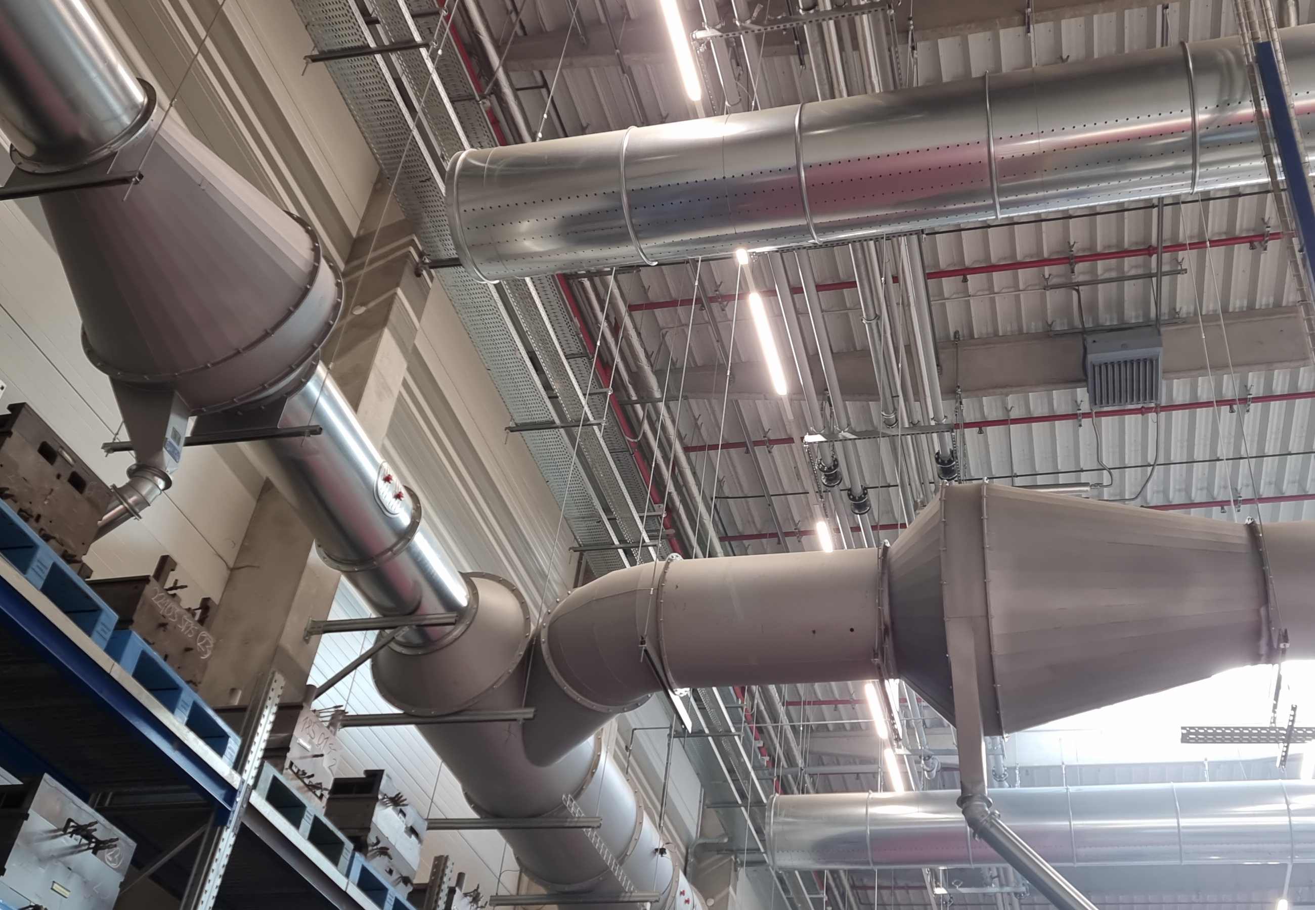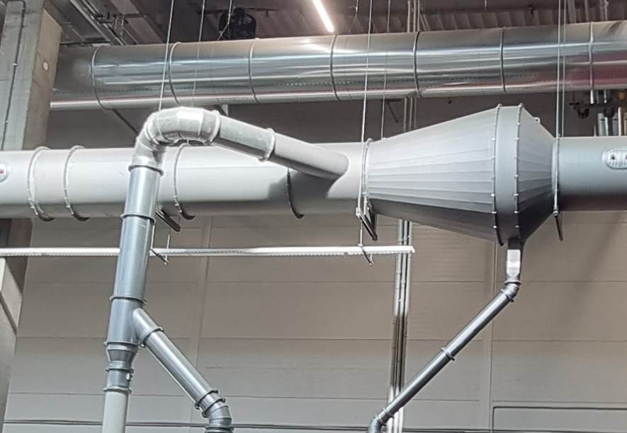 Separátor jisker do sacího potrubí pro svařovny a brusírny