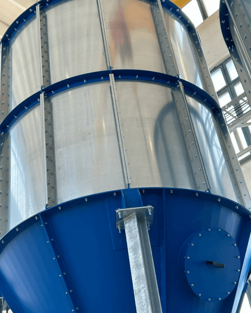 Šroubovaná konstrukce pro snadný transport, montáž a flexibilní použití. Naše zásobníky na sypké materiály jsou navrženy jako modulární systémy se šroubovanou konstrukcí, které umožňují snadný transport, rychlou instalaci a flexibilní přizpůsobení konkrétnímu provozu. Využívají se zejména pro skladování alternativních paliv, biomasy, granulátů, prachů a dalších sypkých surovin.