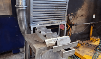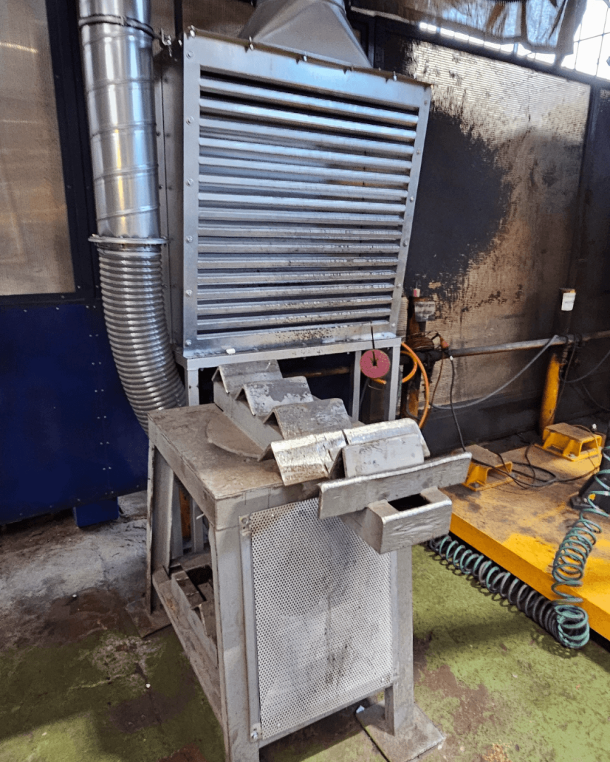Naše řešení využívá odsávací digestoře umístěné přímo proti proudu jisker, díky čemuž dochází k maximálnímu zachycení prachu i jisker už v místě jejich vzniku.