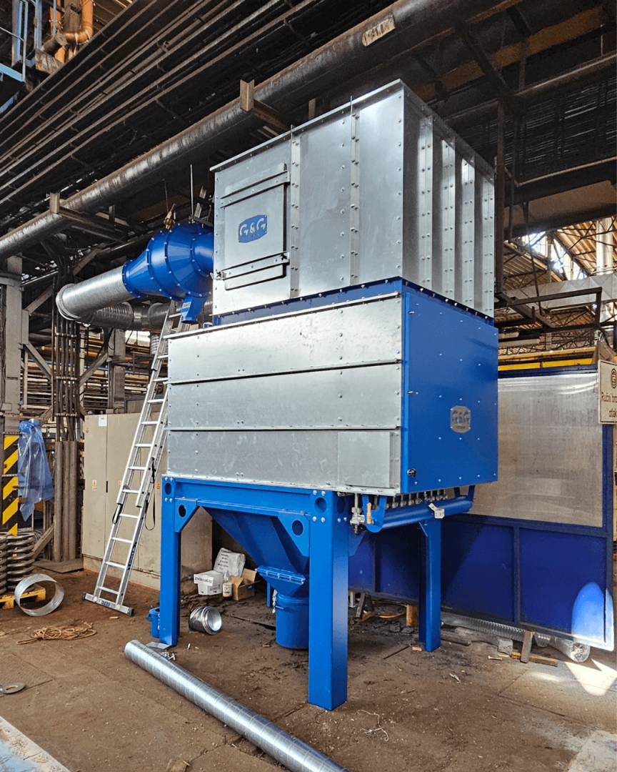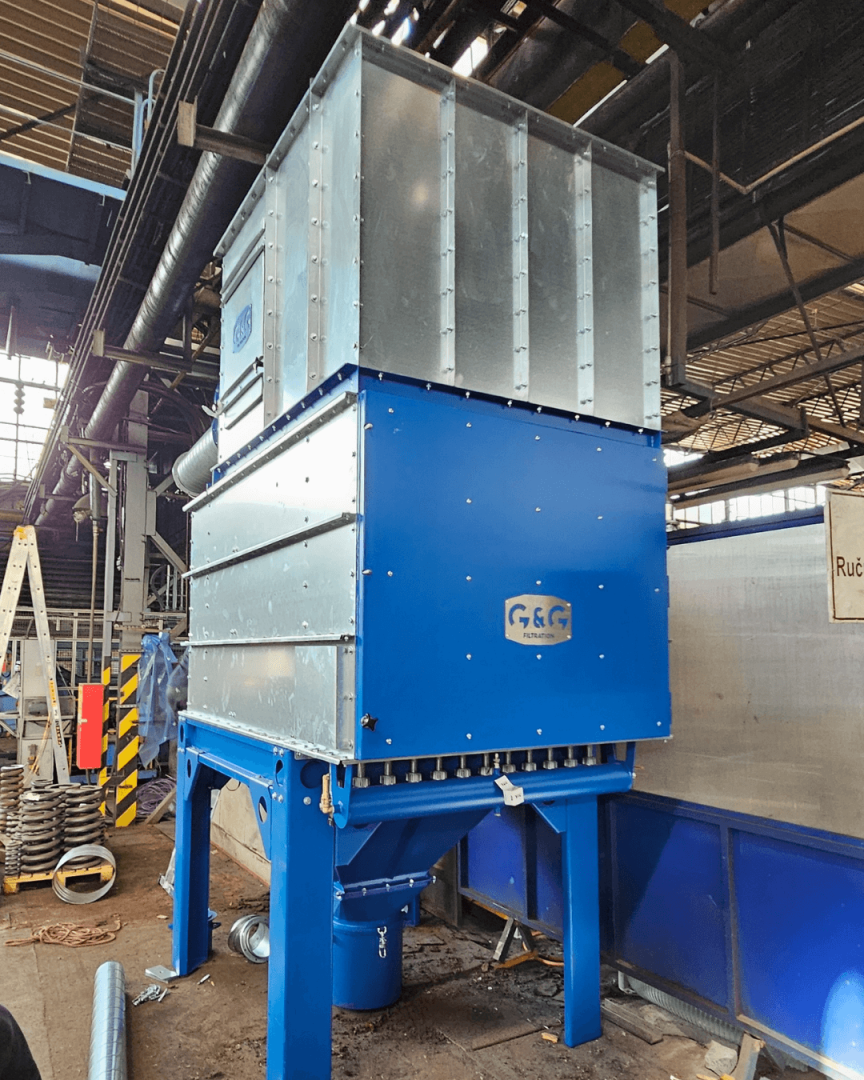 Použitý filtr Jet BAG je osazen automatickou regenerací pomocí tlakového vzduchu, což umožňuje kontinuální provoz bez nutnosti manuální údržby.