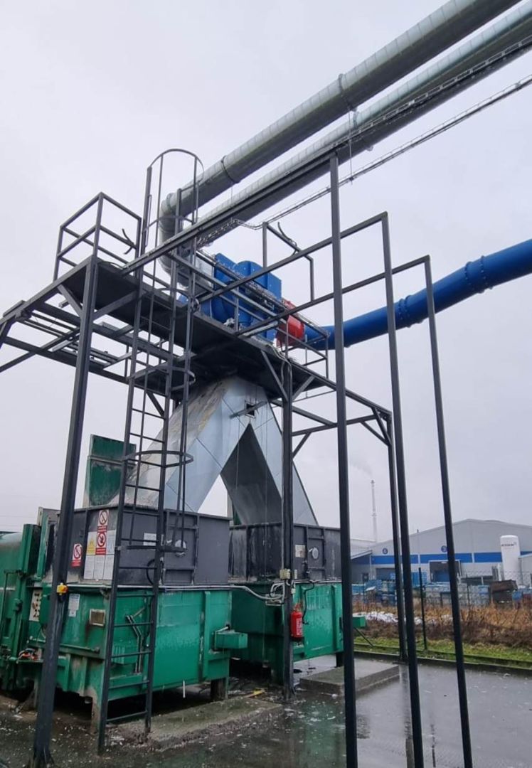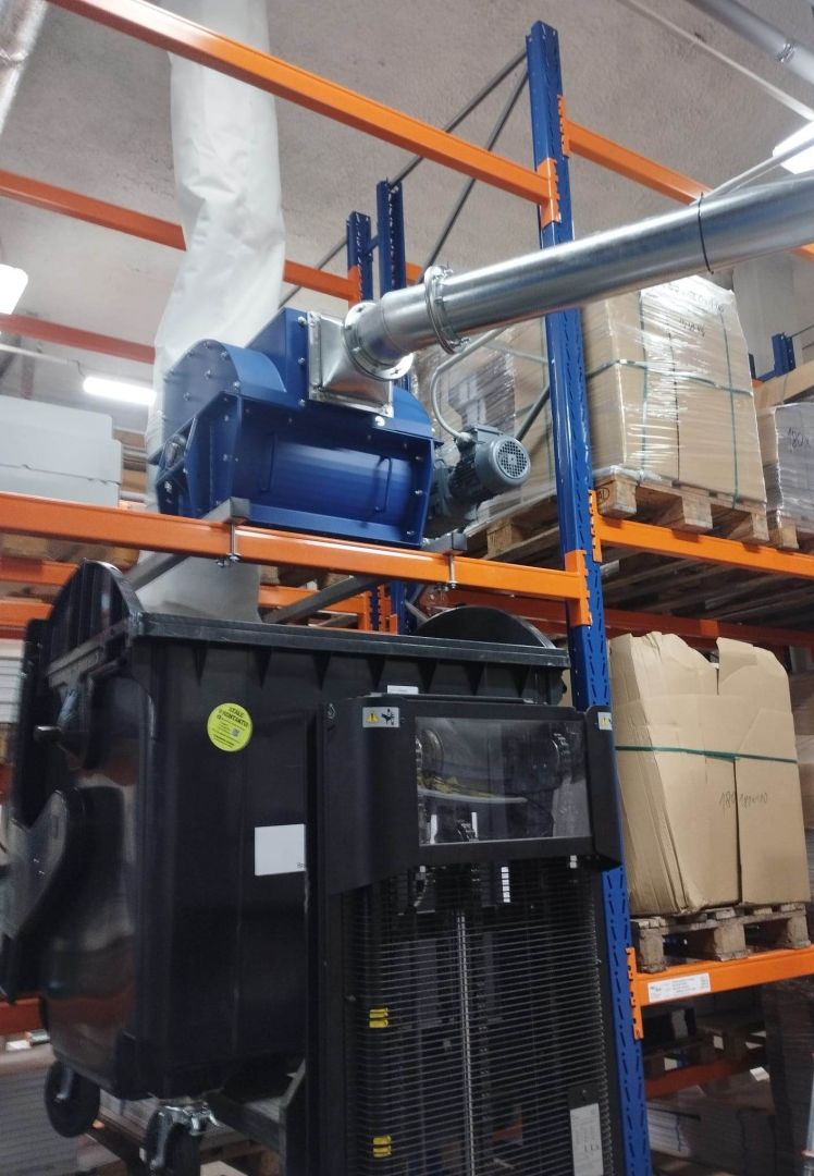 Pro realizaci jsme použili námi vyráběný separátor papírových odřezků typu RSGG – Mezizásobník byl zkonstruován a navržen na míru dané aplikace. Výsledkem naší realizace je bezprašný prostor kolem lisu na odpad.