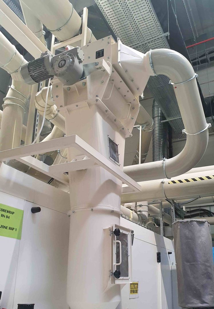 Pro naše klienty řešíme systémy pro odsávání papírových odřezků a papírovího prachu. Nyvrhujeme systémy s rotačními separátory pro kontinuální odlučování papírových odřezk do lisu. Rotační separátor je umístěn na vlastní ocelové konstrukci přímo nad vstupem do lisu. U nepřetrřitých papírenských výrob jsou použity dva lisovycí kontejnery z důvodu vzájemné zastupitelnosti při naplnění kontejneru papírem. Filtrace papírového prachu za rotačním separátorem probíhá ve filtrační ednotce JetBAG, která je vybavena pro odsávání explozních prachl odlehčovacími membránami.